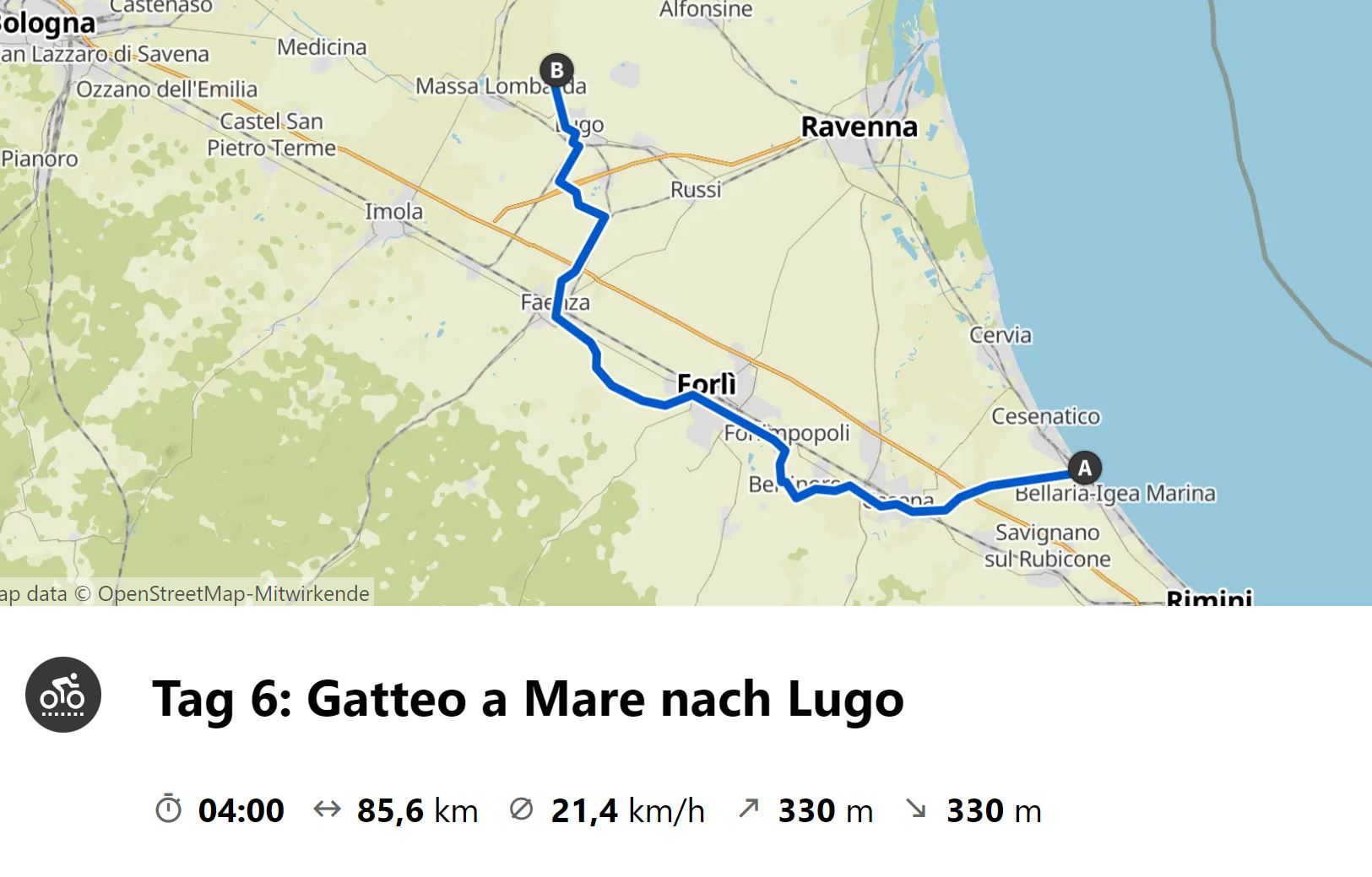 I started from Bologna because there is a direct train from Munich to Bologna (and you cannot transport bikes on night trains).